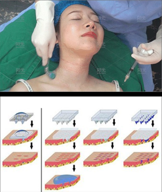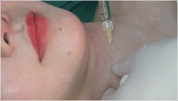 采用真皮层赋活细胞赋活疗法,以透明质酸为母液(搭载多种氨基酸、L-肌肽和维生素等)直接注射至真皮层,满足颈部肌肤的营养补给以及相应组织容量缺失的填充。